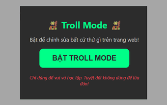 Troll Mode, kullanıcı dostu bir arayüze sahiptir ve etkinleştirilmesi son derece basittir. Eklenti, yapılan değişikliklerin yalnızca kullanıcının bilgisayarında görünmesini sağlar; sayfa yenilendiğinde her şey eski haline döner. Bu sayede, kullanıcılar güvenli bir şekilde eğlenceli içerikler oluşturabilirler. Eğlenceli ve yaratıcı bir deneyim sunan Troll Mode, web sayfalarını eğlenceli hale getirmek isteyenler için ideal bir araçtır.